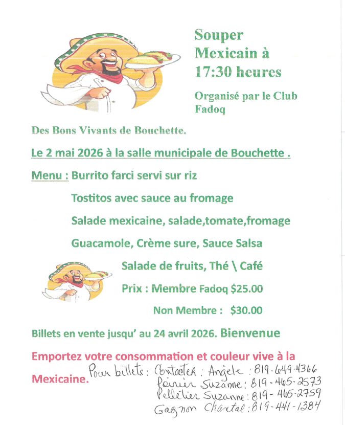 Souper mexicain organisé par la FADOQ